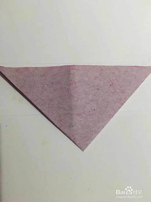 第一步 首先把一张16厘米X16厘米的正方形红色彩纸 从下向上对角折叠整齐