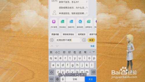 在新界面里,输入处理结果不满意,点击发送按钮。