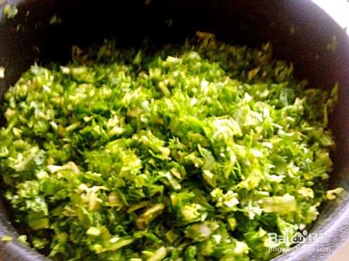 将苦菊清洗后剁碎,放少许盐静置几分钟,用布将苦菊中的水分挤出;