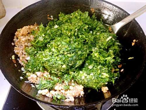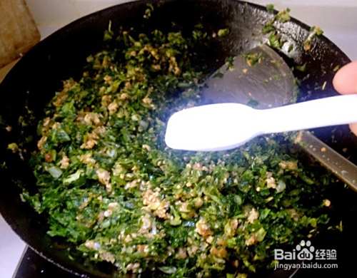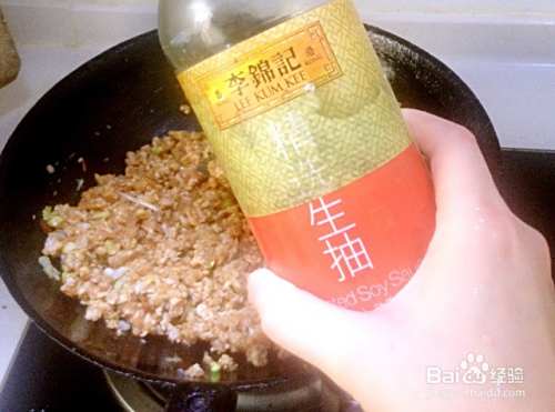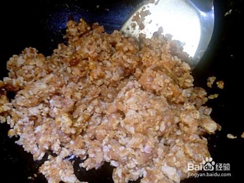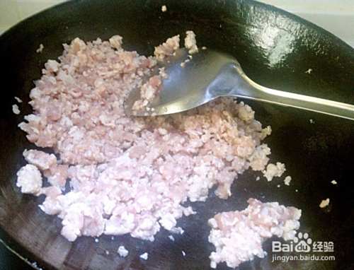 炒锅烧热放少许油,将肉馅煸炒至变色关火;