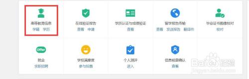 在学信网主界面中,选择高等教育信息一栏的学籍菜单。