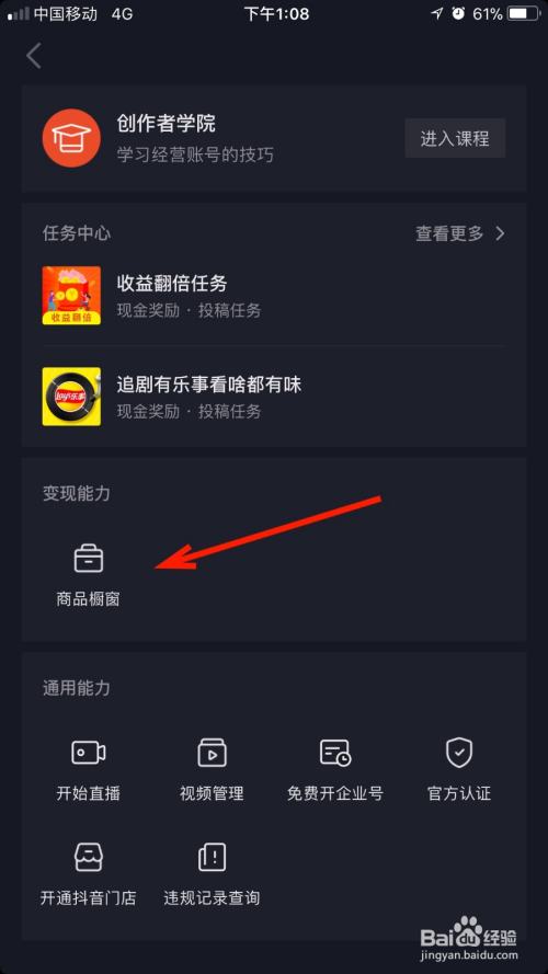 接着在新的系统界面我们就可以查看抖音的商品橱窗了。