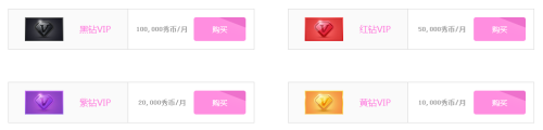 从会员标识来看,每月花费一定的虚拟币可以开通会员,目前,KK会员总共分为四类,从低到高依次是:黄钻VIP、紫钻VIP、红钻VIP、黑钻VIP