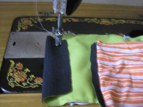 4然后把表面朝下,另一边缝合底布。