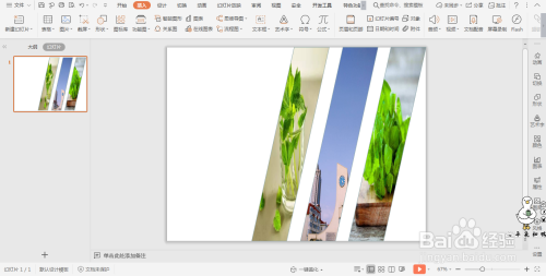 在PPT中三张图片进行排版的方法如下: