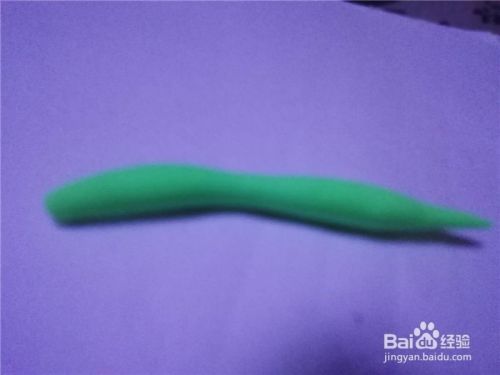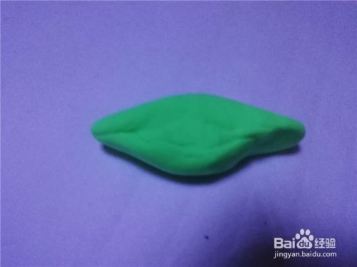 从绿色的黏土里拿出一小块黏土,做成树叶的形状,做好柠檬的叶子。