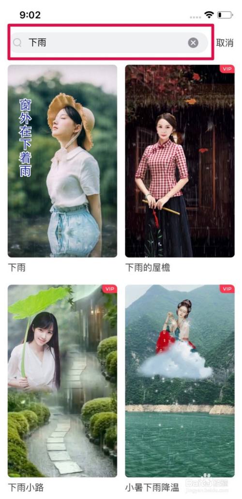 之后,在上方的搜索框内输入【下雨】
