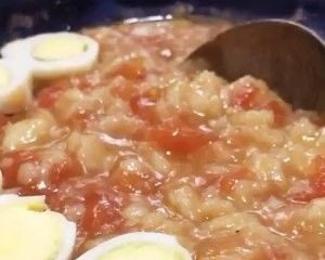 一个中等大小的西红柿,烫一下去皮,切小块,加220克水和1克盐煮开。