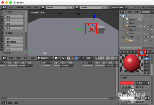 创建一个“球体”,并添加材质赋予颜色(球体旋转调整好后,可以通过“物体”--“应用”--“旋转&缩放”把物体的旋转与缩放的当前状态归0)。