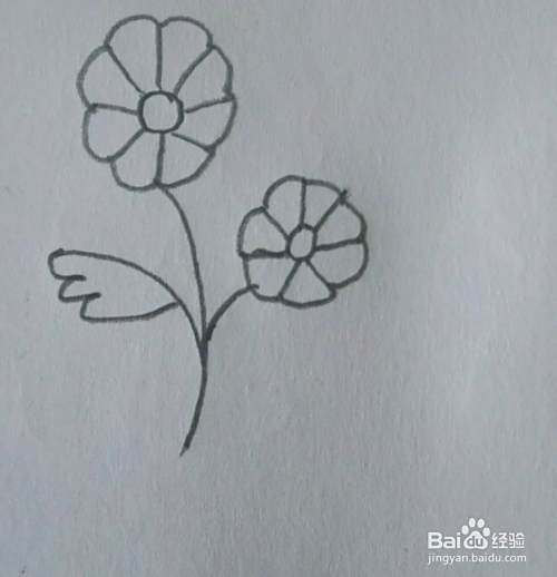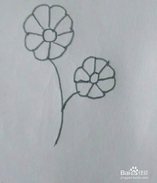 然后画出两个花朵的花杆。