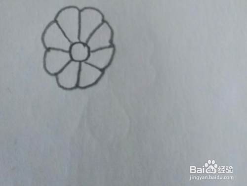 首先在纸上画一个圆形,这是花的花心。