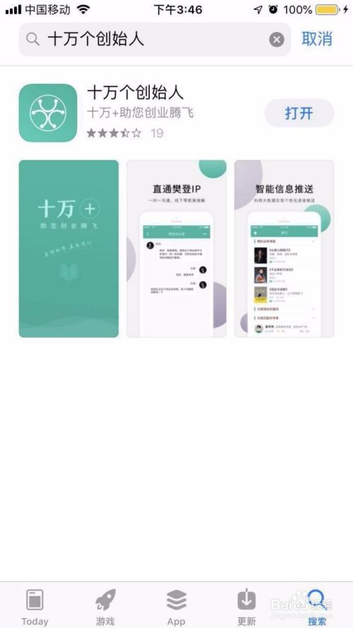 1. 首先下载“十万个创始人”app,IOS用户在苹果商店直接搜索“十万个创始人”,即可下载。
