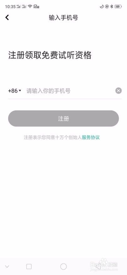 3. 下载安装完毕,进入注册页面,有帐号的可以直接登陆,没有帐号用手机注册一个就可以。