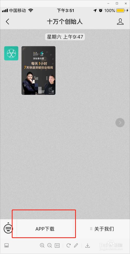 2. 或者关注公众号“十万个创始人”,菜单栏点击“APP下载”,即可下载。