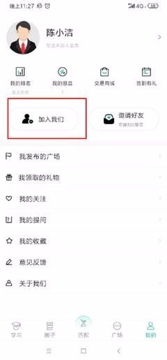 6. 那么怎样成为短训用户呢?先打开“我的”界面,然后点“加入我们”。