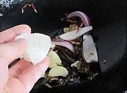 加入一小块冰糖翻炒到融化