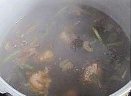 大火煮到保险盖发出扑哧声后改中火煮半个小时就做好了