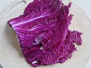 紫罗兰白菜叶清洗干净,去除根部,放入开水中,焯熟。