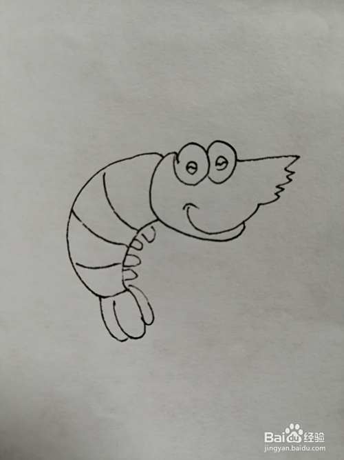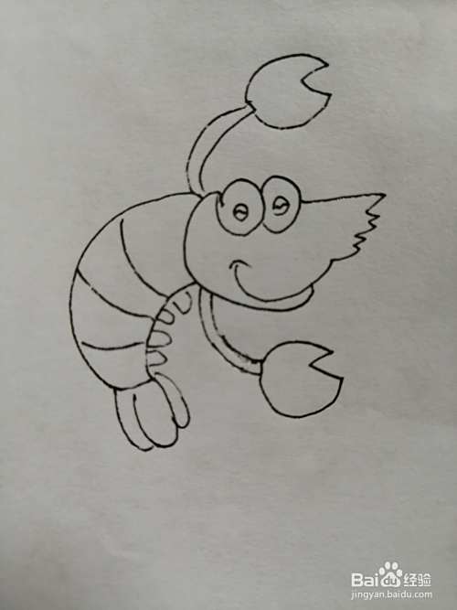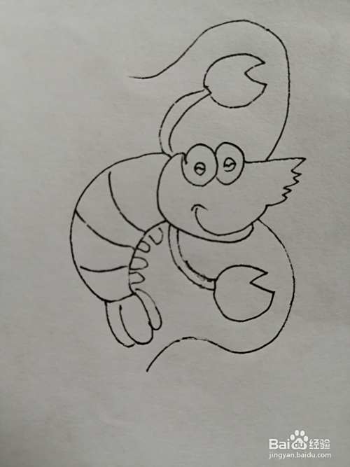 第三步,接着我们把可爱的小龙虾的身体画出来,注意身体上花纹的画法。