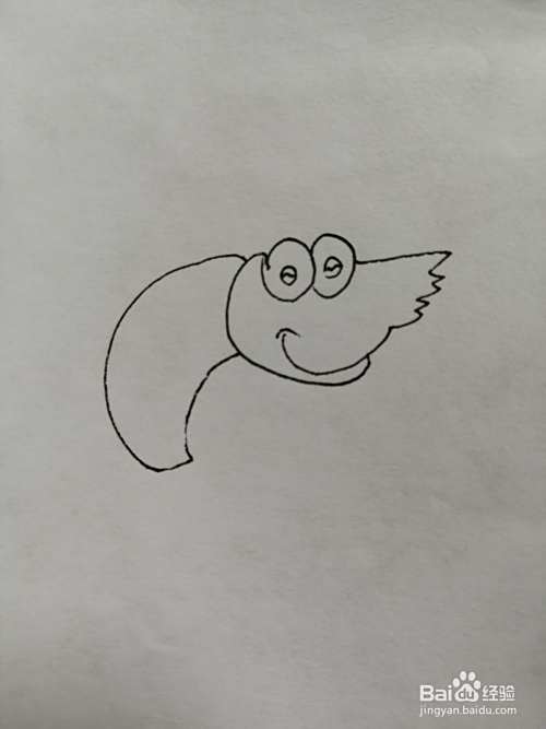 第二步,接着继续画出可爱的小龙虾的头部轮廓,注意小龙虾嘴巴的画法。