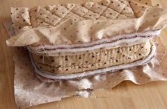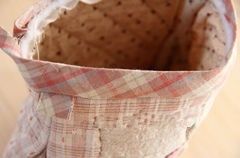 9.制作包的侧面部分,按图纸的对折线折双,然后按表布铺棉里布三层疏缝压线,之雁距主要留缝份哦!