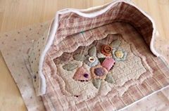 8.后面的做法相同,将表布铺棉里布三层疏缝压线。