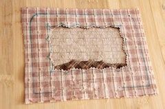 3.将表布a中间挖掉,边缘剪牙口,然后与表布b贴缝在一起。