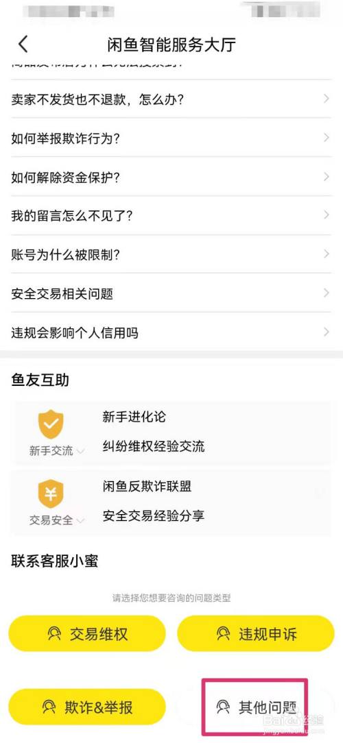 接着,选择我们需要咨询的问题,这里我们选择“其他问题”。