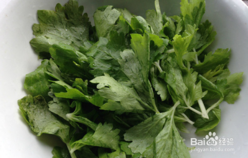 芹菜把叶子和茎分离出来,叶子用于打底用,不用煮熟,直接生的就可以,茎直接切成短节。
