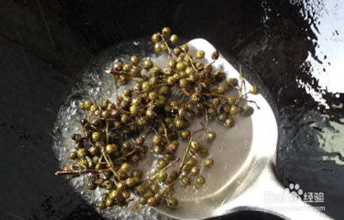 青花椒放进锅里炸油,再把炸好的花椒和油一起淋在盘里即可。