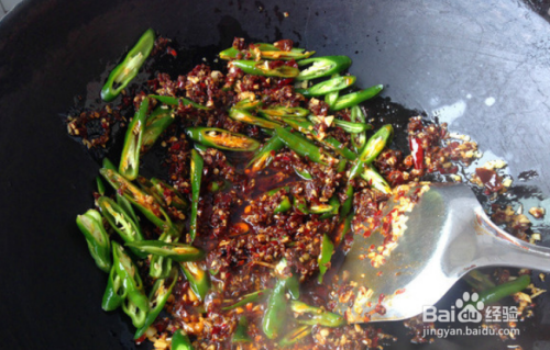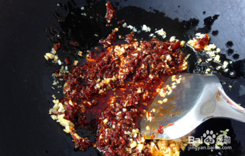 烧油,把姜蒜米炒香之后,加入豆瓣、辣椒面、青花椒面、盐、胡椒、白糖、鸡精、浓缩高汤汁。