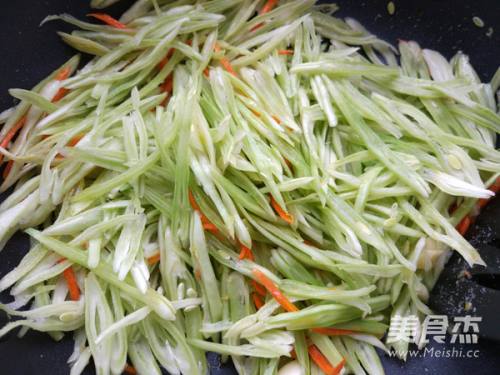 5加入芸豆丝、盐和少许水,翻炒。