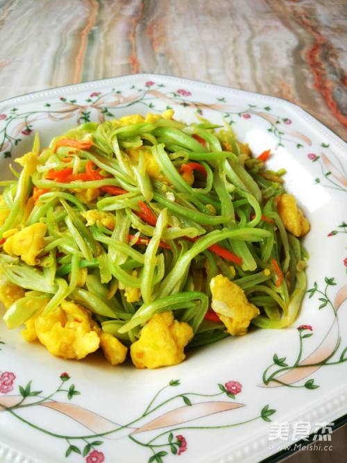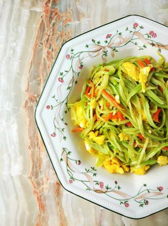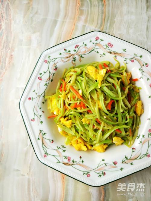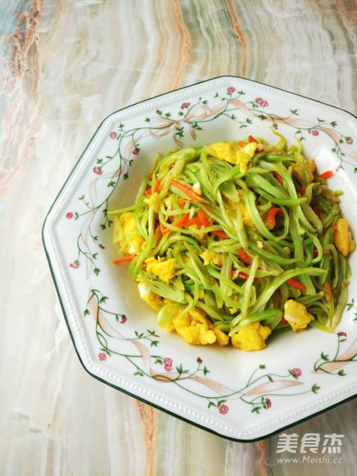 6炒至芸豆丝九成熟,倒入鸡蛋炒匀炒熟,出锅前点少许生抽提味即可。END