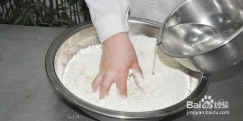 然后将食用碱、盐、温水全部混合,一点一点揉进发酵好的面团,彻底揉匀。