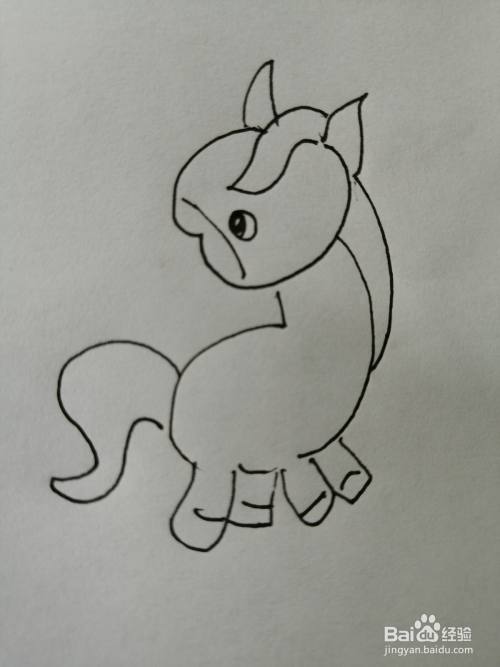 第七步,最后把可爱的小马的小尾巴画出来,可爱的小马就画好了。