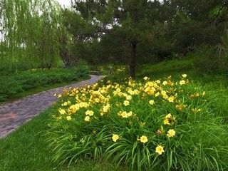 萱草栽培管理简便,耐寒性强,一次栽植可多年受益,是庭院花卉中的佼佼者。庭院中多裁植于花境、花带或灌木绿简前,或与其他花卉配置成混合花坛或在草地丛植,富有特色。利用置草作插花,或配置成别具风格的花篮,更增添风趣。