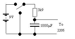 从电容器的放电特性中可以得到时间常数以及除了电压从Vc降至Vs的36.8%所需要的时间以外的充电时间。这样建立触发就变得困难,采用1000μF的电容在几秒内完成手动触发。采用的电路改进图如下所示。电容首先通过开关与电源相连,之后将开关打到另一位置使电容进行放电。