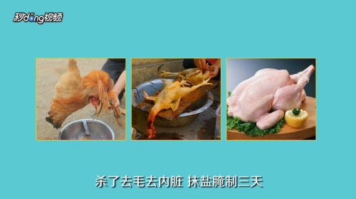 3腌制法。杀了去毛去内脏,抹盐腌制三天,挂在通风处自然晾干。