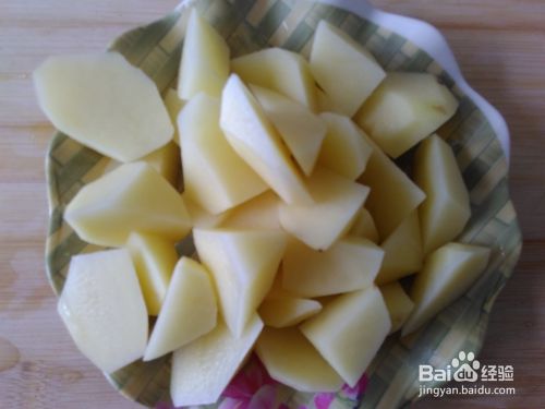 鸭肉清理干净斩成小块,土豆去皮,切成棱角型小块。