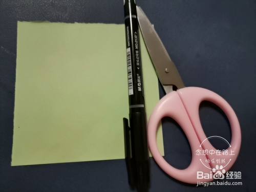 首先准备好一张彩色纸、一支笔和一把儿童剪刀。