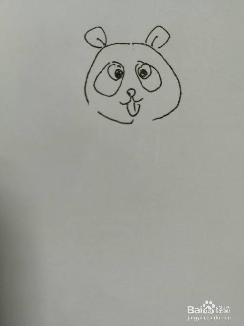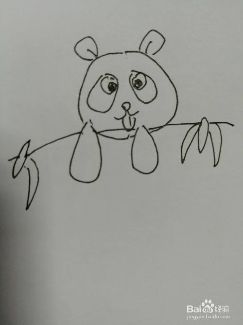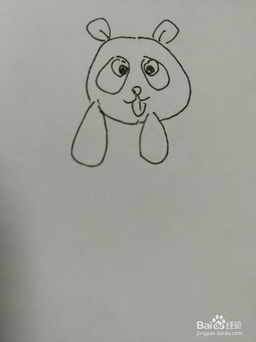 第三步,接着在可爱的小熊猫的眼睛下面画出鼻子和小嘴巴。