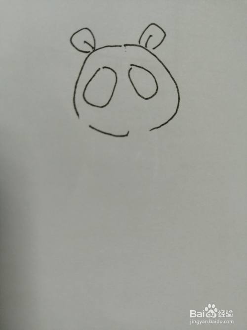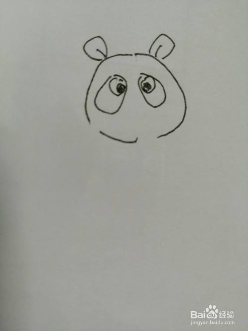 第二步,接着在可爱的小熊猫的头部里面画出两只可爱的大眼睛。