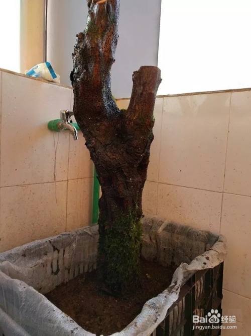 清水泡根两个小时,因没地,用水果筐养坯。土用的是菜园土,加了三分之一的从山上带下来的腐叶土,把土混好放在筐里,直接用自来水灌水同时用木棍把水和成稀泥浆,再把桩放到泥浆里使劲往下压(这样栽的好处在于树根与土充分结合,不易空根,提高成活率)然后固定大概形态,表面上捂上干土就算是初步栽好了。