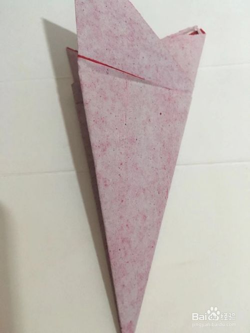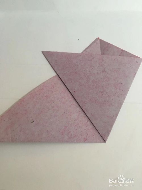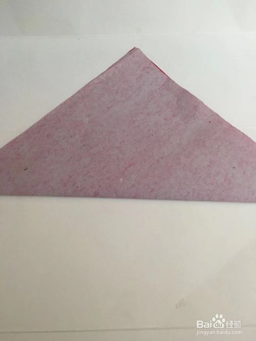 第一步 用一张16厘米宽 16厘米长的正方形红色彩纸 对角线竖起来摆放 然后从下向上对角折叠