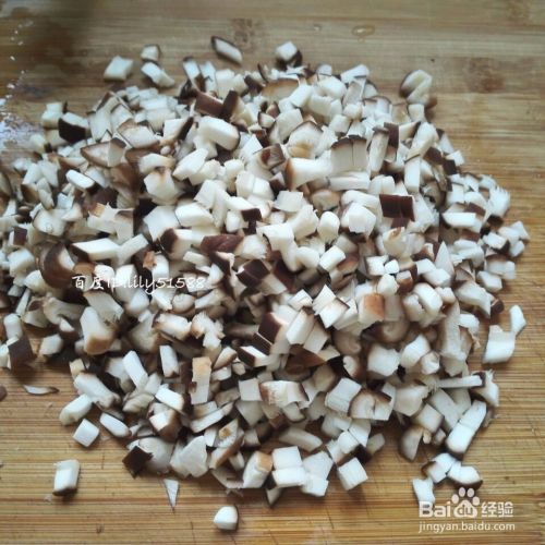 香菇切成小碎丁。