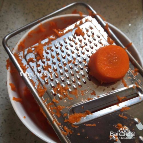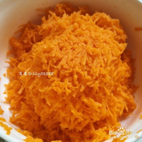 胡萝卜去皮洗干净,擦丝。