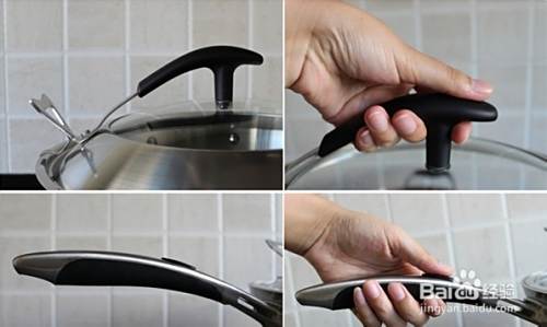 锅盖提柄和手柄,采用铸钢包硅胶做成的,有隔热防滑作用,既美观又符合人体学设计。