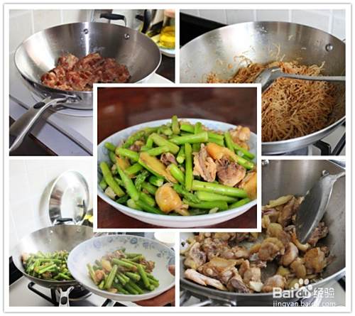用这个炒锅做了几道家常菜:“芦笋炒鸡”、“煎猪排”“鸡蛋炒面”。技术不怎么样,味道还可以。O(∩_∩)O~