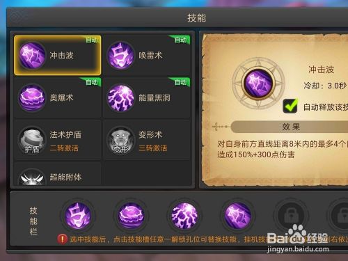 点击技能页面下侧的技能,然后再点击其他的技能就可以配置技能拦了,这样可以交换技能的位置
