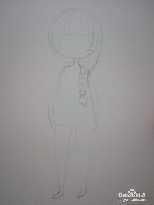 先用几何图形概括人物各部分的大体轮廓。因为后期要用水溶彩铅上色,所以用水彩纸画。